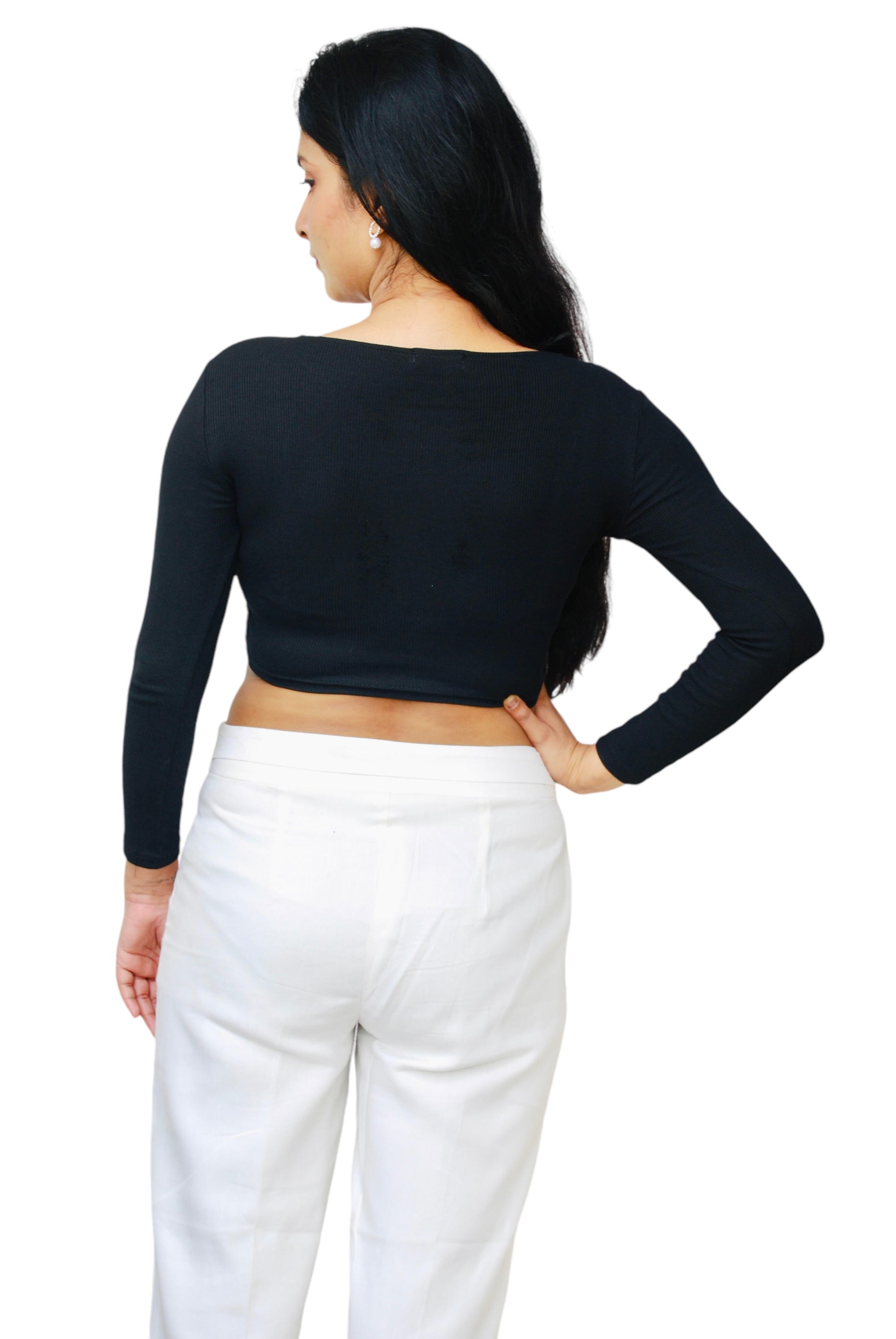 *Black Color Full Sleeve Ribbed Fabric Crop Top.